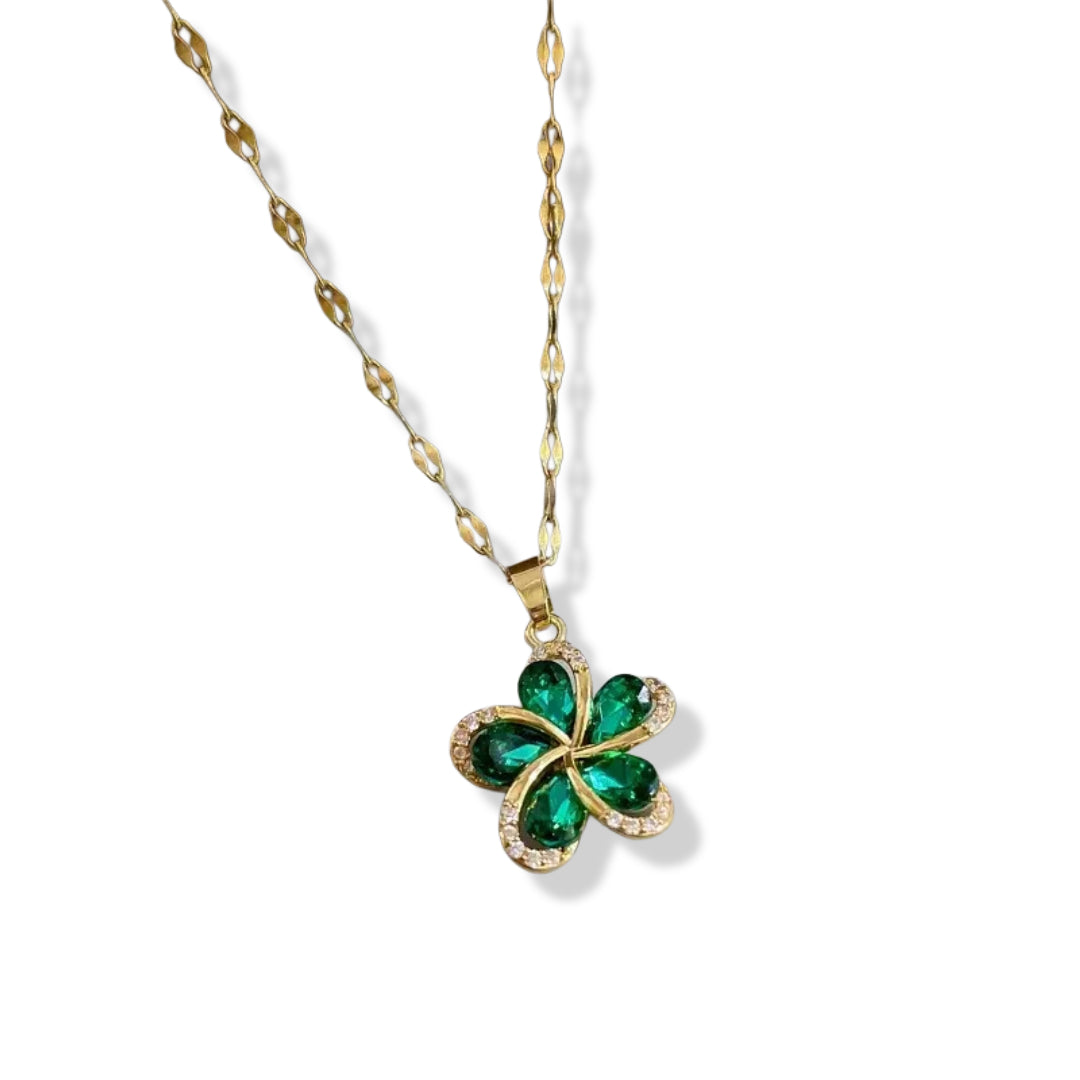 Ett halsband med en grön sten och en unik design. En stilfull detalj som ger din look en speciell och personlig touch.