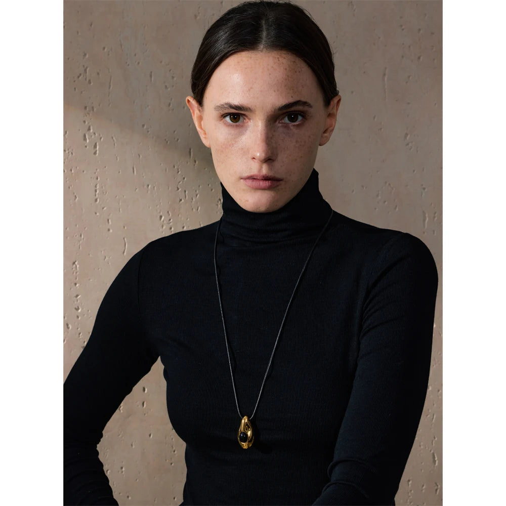 Ett elegant halsband med ett äkta 18k guldpläterat hänge, där stenen är handplockad och handformad i Asien. Den unika stenen, noggrant formad för att framhäva dess naturliga skönhet, ger halsbandet en exklusiv och sofistikerad känsla. Ett perfekt smycke för den som söker något personligt och vackert.