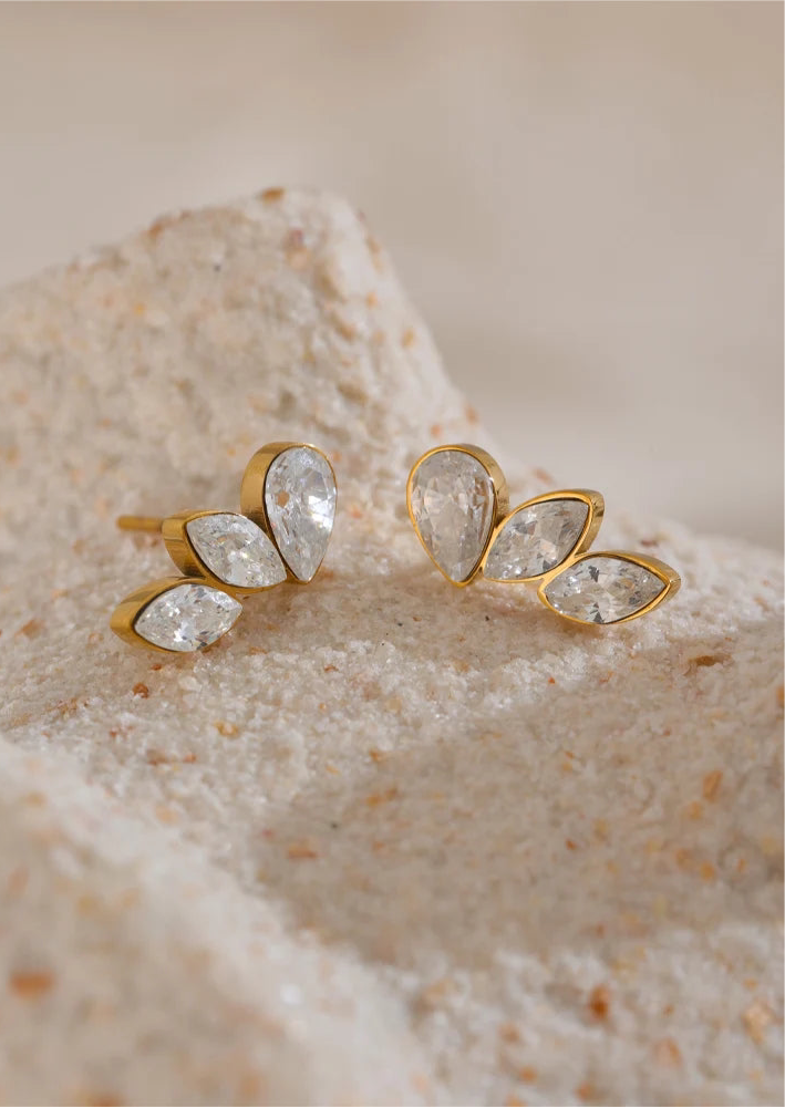 Ett elegant örhänge med tre ovala Zirkonia stenar som ger en sofistikerad och strålande look. Den avlånga formen skapar ett vackert fall och fångar ljuset på ett mjukt men glittrande sätt. Ett smycke som balanserar lyx och enkelhet.